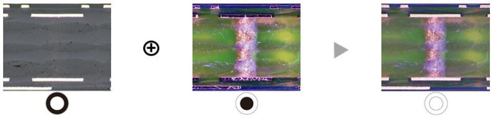 上面的MIX观察图像清晰再现了该组件的颜色和纹理以及粘合剂层的状况。 |
