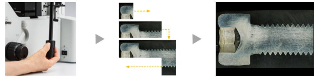 使用对焦手柄调整物镜高度。 EFI自动采集和堆叠多幅图像,生成单幅的样品全聚焦图像。 生成全聚焦图像。