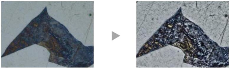 偏光:一种能够突出材料纹理和晶体状态的观察技术,用于观察诸如球墨铸铁的石墨生长类型等金相结构和矿物。 |