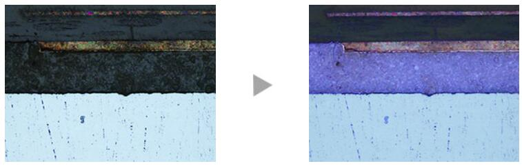 采用先进图像处理技术的高动态范围(HDR)可在图像内调整亮度差异,从而减少眩光。其也有助于增强低对比度图像的对比度。高动态范围(HDR)功能可用于观察电子组件的细微结构并识别金属晶界。