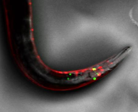 GFP、RFP 标记线虫中的神经元(Image courtesy of Julie C. Canman, Ph.D., Columbia University) |