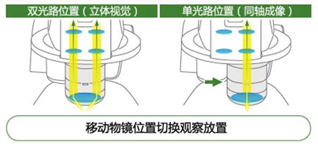 使用P2-RNI2智能型物镜转盘可轻松进行双光路位置(立体视觉)与单光路位置(同轴成像)的切换。数码成像借助单光路方式可以获得无与伦比的清晰图像。