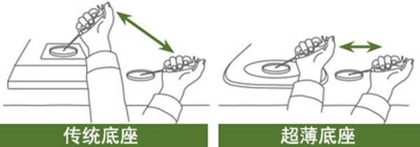 • 超薄底座—更薄的LED照明底座与平板底座可有效减少手臂的抬高距离提供绝佳的人体工学舒适性。
