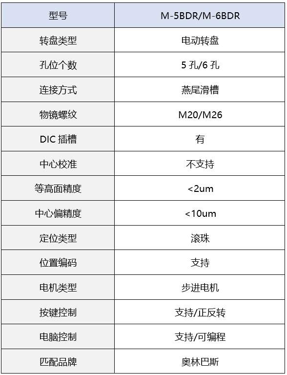 M-5BDR/M-6BDR五孔/六孔位电动物镜转换器,通过控制器控制或者PC远程控制,可实现显微镜物镜的电动切换。 采用进口SKF精密轴承,定位精准,使用寿命长。