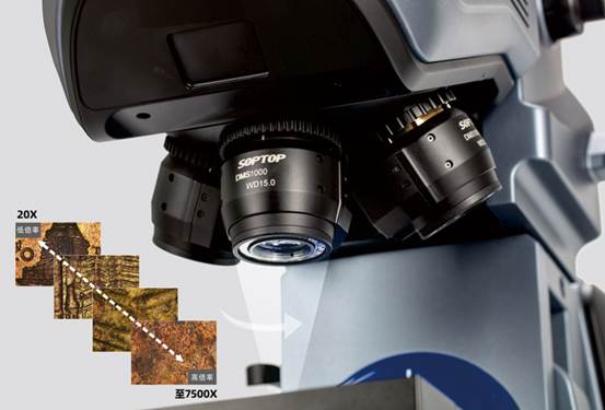 采用专用APO系列物镜,可实现从20倍至7500倍的快速倍率切换,用户仅需一键操作,高效满足多样化的观测需求。