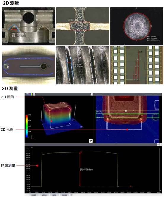 支持跨视野测量、智能平面测量、2D/3D测量、轮廓测量等